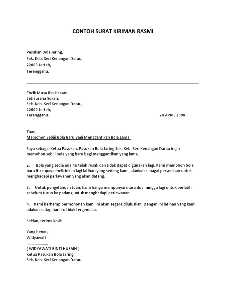Contoh Surat Kiriman Rasmi Permohonan Kumpulan Contoh Terbaru